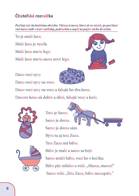 Táto knižka je určená predovšetkým deťom s problémami v čítaní. Rovnako je práca s knižkou osožná pre deti, ktoré nemajú dostatočnú predstavu o obsahu prečítaného deja – teda problémom je tzv. čítanie s porozumením. Texty v knižke sú vytlačené veľkými písmenami a dvojfarebne, rozdelené po slabikách. Každý príbeh či poviedka má na konci niekoľko otázok k prečítanému textu na overenie si porozumenia prečítaného deja, ale i rozvoj naratívnych schopností, sociálnych a emocionálnych kompetencií detí.