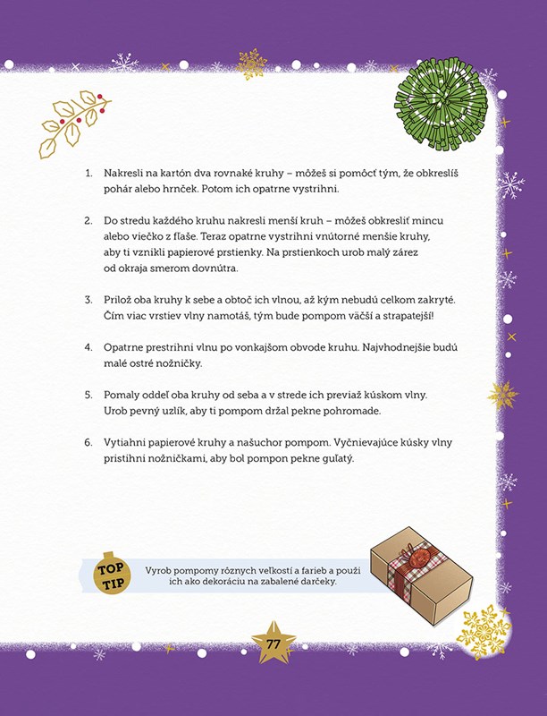 Každý deň, ktorý zostáva do Vianoc, si s deťmi prečítajte jednu rozprávku. Za každou nájdete jednoduchý návod na výrobu vianočnej ozdoby alebo inej drobnosti, s ktorou čakanie na Ježiška uplynie ako voda. Do tvorenia sa môžu zapojiť všetci bez rozdielu veku – navrhnete si vlastné vianočné priania, napíšete list Ježiškovi, vyrobíte si dekoráciu na stôl alebo na vianočný stromček , objavíte zábavne hry a veľa ďalšieho. Krásne ilustrovaná kniha sa stane neodlúčiteľnou súčasťou čarovného času Vianoc.