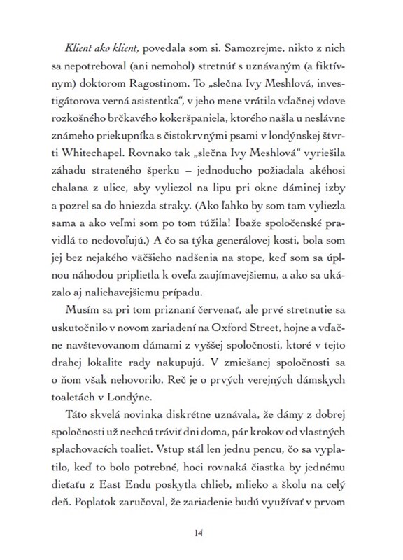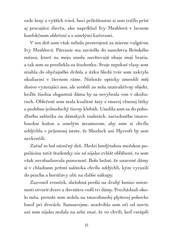 Náhodné opätovné stretnutie s ľavorukou lady Cecily Alistairovou zanechá v Enole zvláštny dojem. Prečo sa jej priateľka správala tak podivne a podstrčila jej svoj ružový vejár? Chcela tým niečo naznačiť? Keď objaví stopu, ktorá jej domnienku potvrdí, ihneď sa vrhne do pátrania. Čoskoro zistí, že Cecily uniesli a chystajú sa ju proti jej vôli vydať. Aby Enola nešťastiu zabránila, bude musieť spraviť ústupok - spojiť svoje sily s bratom Sherlockom. Bez jeho pomoci to totiž tentoraz nepôjde…