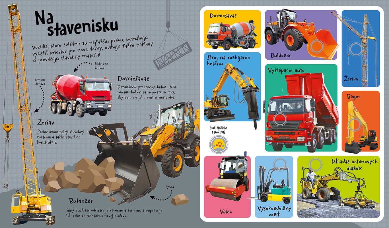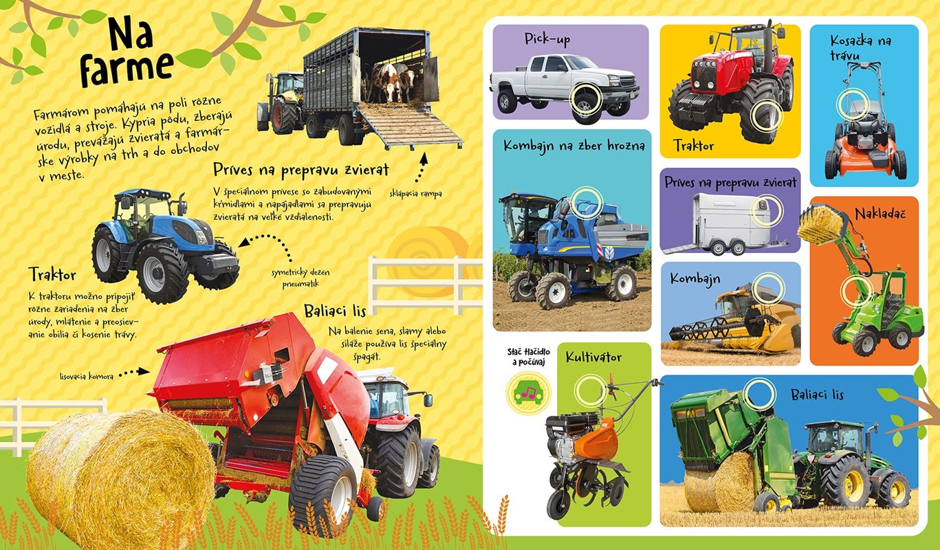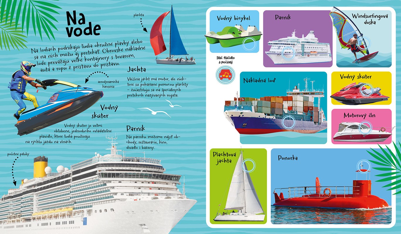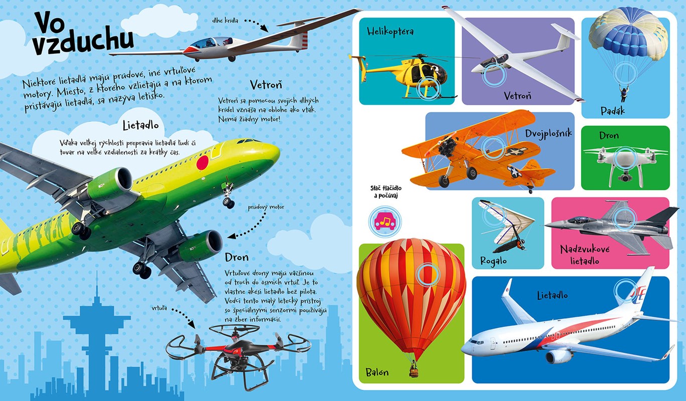 Táto krásna farebná zvuková knižka zavedie malých čitateľov do sveta dopravných prostriedkov. Stačí sa dotknúť ich obrázkov a tie na stránkach ožijú. Pri spoznávaní prostriedkov prepravy, aktívneho oddychu či záchrany a počúvaní zvukov, ktoré vydávajú, zažijú deti kopec zábavy!