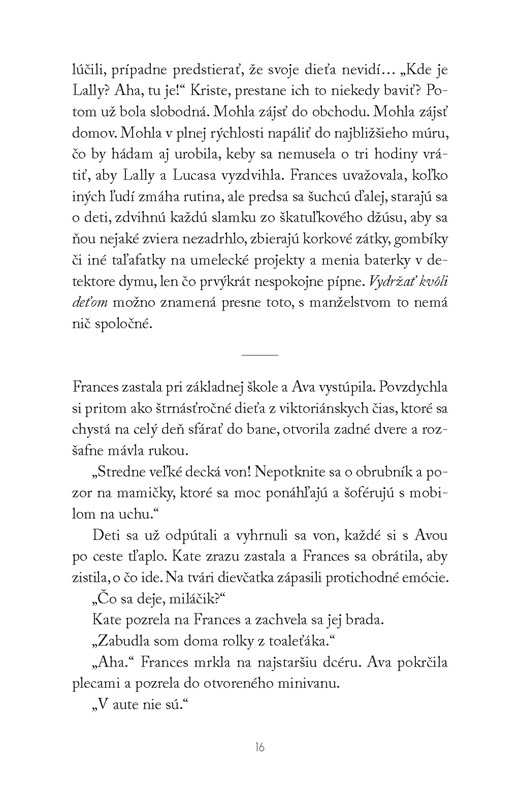 Bývala to pokojná štvrť. Medzi susedmi vládli priateľské vzťahy, všetci si navzájom pomáhali – až kým Frances jedného dňa nevtrhla do domu svojej susedky Anne a nenačapala ju s milencom. Od tej chvíle je harmonické susedské spolunažívanie v ťahu. No Anne nie je jediná, kto ukrýva nejaké tajomstvo. Každá z rodín má vlastné starosti, ktoré by najradšej schovala za zavretými dverami. Klebety sa však začnú šíriť ako lesný požiar a postupne odhaľujú, čo sa deje za fasádami dokonalých domov.