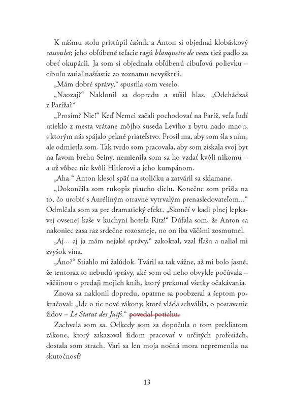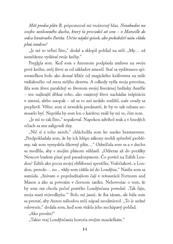 Osvienčim, 1942. "Keď sa toto všetko skončí, mohla by si celému svetu povedať, čo nám urobili." Nacisti už priveľa príbehov ukončili priskoro. Môže však človek skutočne zomrieť, ak jeho príbeh žije ďalej? Musím prežiť. Musím vyrozprávať svetu náš príbeh, aby mohol žiť ďalej... Keď židovská spisovateľka Etty Weilová prekročí desivé brány Osvienčimu, túži vrátiť sa do svojho bytu s výhľadom na Seinu, kde sa kedysi pri milovanom písacom stroji pod širokým oknom smiala s priateľmi. S hrôzou sleduje, ako akési mladé dievča bez milosti odtrhnú od plačúcej matky. Etty si vezme štrnásťročnú Danielle pod ochranné krídla a zakrátko ju začne vnímať ako vlastnú sestru. Etty každý večer rozpráva Danielle príbehy – vytvára krásny svet plný predstáv a nádeje, do ktorého sa dievča môže na chvíľu uchýliť. Čoskoro si uvedomí, že príbehy počúvajú aj ostatné ženy v preplnenom baraku. Vyzve ich, aby hovorili o svojich životoch – o milovaných deťoch, ktoré behajú po vonku s obľúbenými hračkami v náručí, o svojich láskach i o rodinách, ktoré už stratili. Etty musí túto hrôzu prežiť – ak nie pre seba, tak preto, aby dodržala sľub, ktorý dala týmto statočným ženám: že ich príbehy nezostanú zabudnuté. No čím viac nádeje Danielle cíti, tým viac riskuje svoj život – vzpiera sa brutálnym esesákom a núti Etty ochraňovať ju. Raz však Danielle zájde priďaleko…
