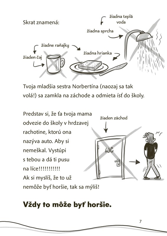 Od autora bestsellerovej série TIGRÍ TÍM VSTÚP, AK SI TRÚFAŠ! Benteho prenasleduje smola. Možno aj preto je jeho mottom: Vždy to môže byť horšie. A zdá sa, že to platí aj v novej škole. Veď ako sa dá viesť normálny, nenápadný život žiaka základky, keď sa pred vami v tých najnemožnejších situáciách zrazu objavia záhadné dvere? Dvere s blikajúcim nápisom: Vstúp, ak si trúfaš! Bente síce tuší, že by bolo rozumnejšie nevšímať si ich, jeho zvedavosť je však väčšia...
